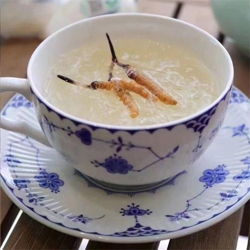 3. 冬蟲夏草泡水:將適量的冬蟲夏草用溫水浸泡一段時間后,喝下泡水。可以單獨服用,也可以與其他藥材一起泡水,如枸杞、黃芪等。這種吃法方便簡單,適合日常飲用。