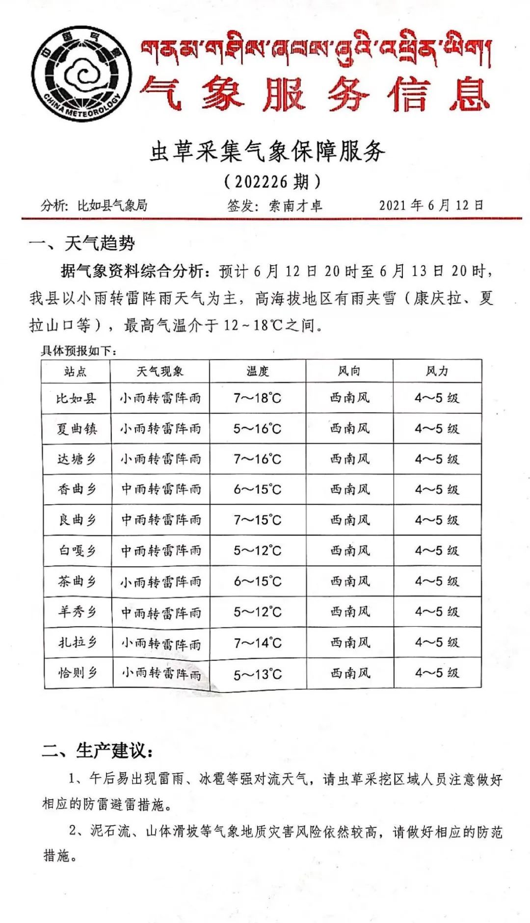20220612|那曲蟲(chóng)草采集氣象保障天氣預(yù)報(bào)