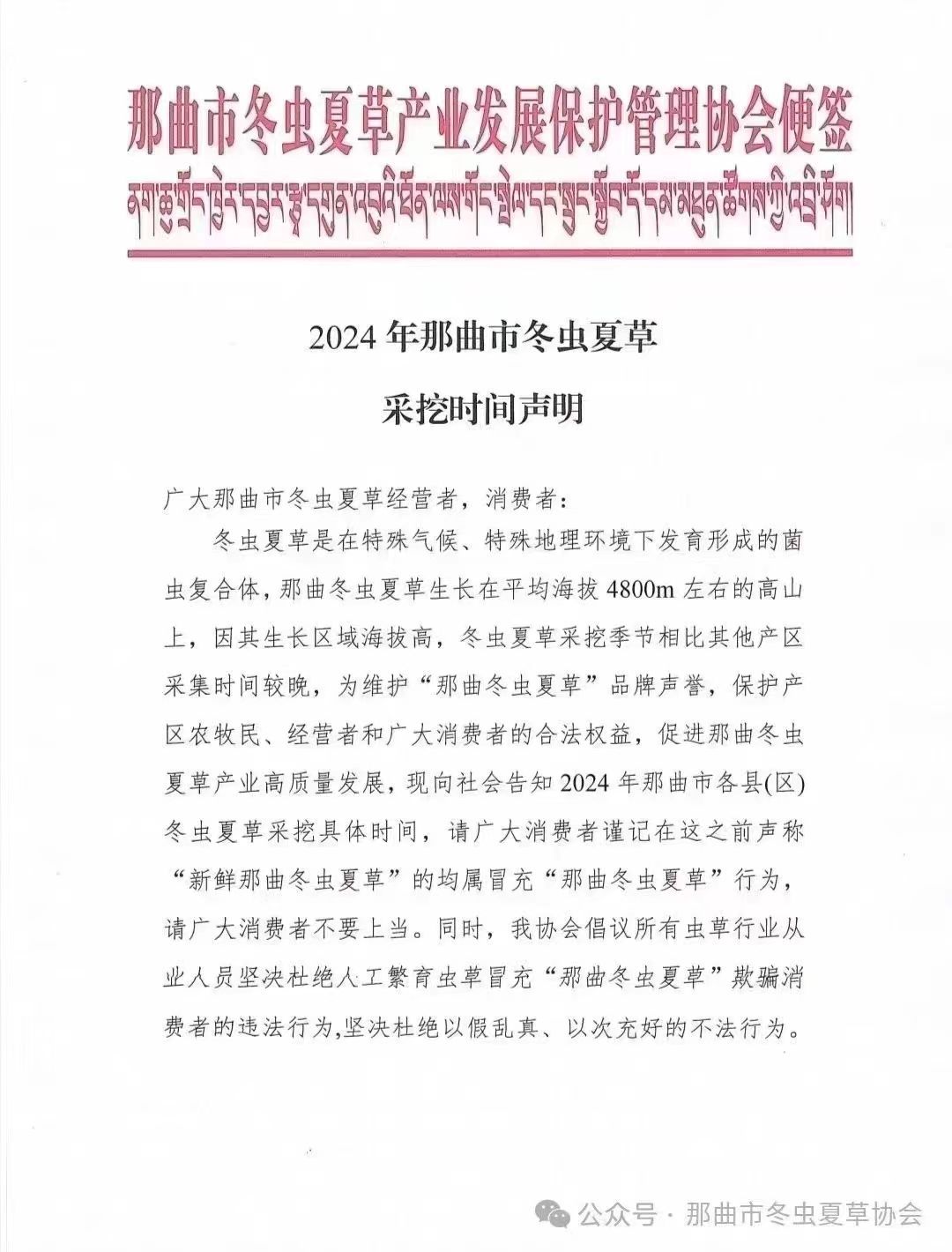 2024年那曲市冬蟲夏草采挖時間聲明