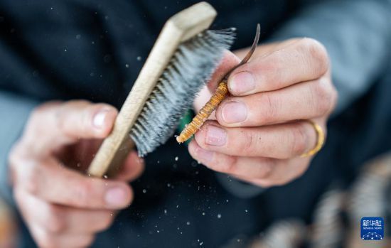 在那曲市索縣西昌鄉(xiāng),牧民白嘎在收納清理好的蟲草(5月18日攝)。新華社記者 丁增尼達 攝