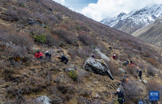 在那曲市索縣西昌鄉(xiāng),牧民在尋覓採挖蟲草(5月18日攝,無人機照片)。新華社記者 丁增尼達 攝
